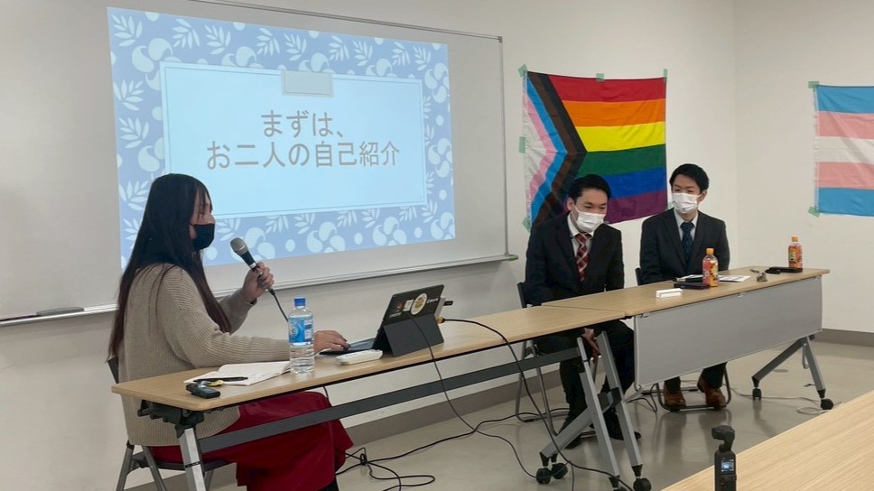 当日は参加者9名とスタッフが集まり、尼崎市でパートナーシップ宣誓を行い、LGBTQ+向けの結婚相談所を運営されている新井智尊さん、田辺義宗さんから、それぞれの立場や経験をもとにお話しいただきました。制度の説明だけでなく、「なぜこの制度が必要なのか」「当事者として何を感じてきたのか」といった率直な想いが語られ、会場は終始あたたかな雰囲気に包まれていました。
